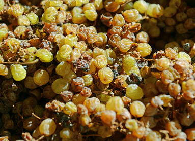 Nach der mühsamen Pressung wird der Saft in alte Eichenfässern, die keine Holznoten mehr an den Wein abgeben, abgefüllt, damit er zwei bis drei Jahre fermentieren kann. Übrigens erhält man aus 100 Kilo frischen Trauben nur 15 bis 18 Liter Vino Santo Most.